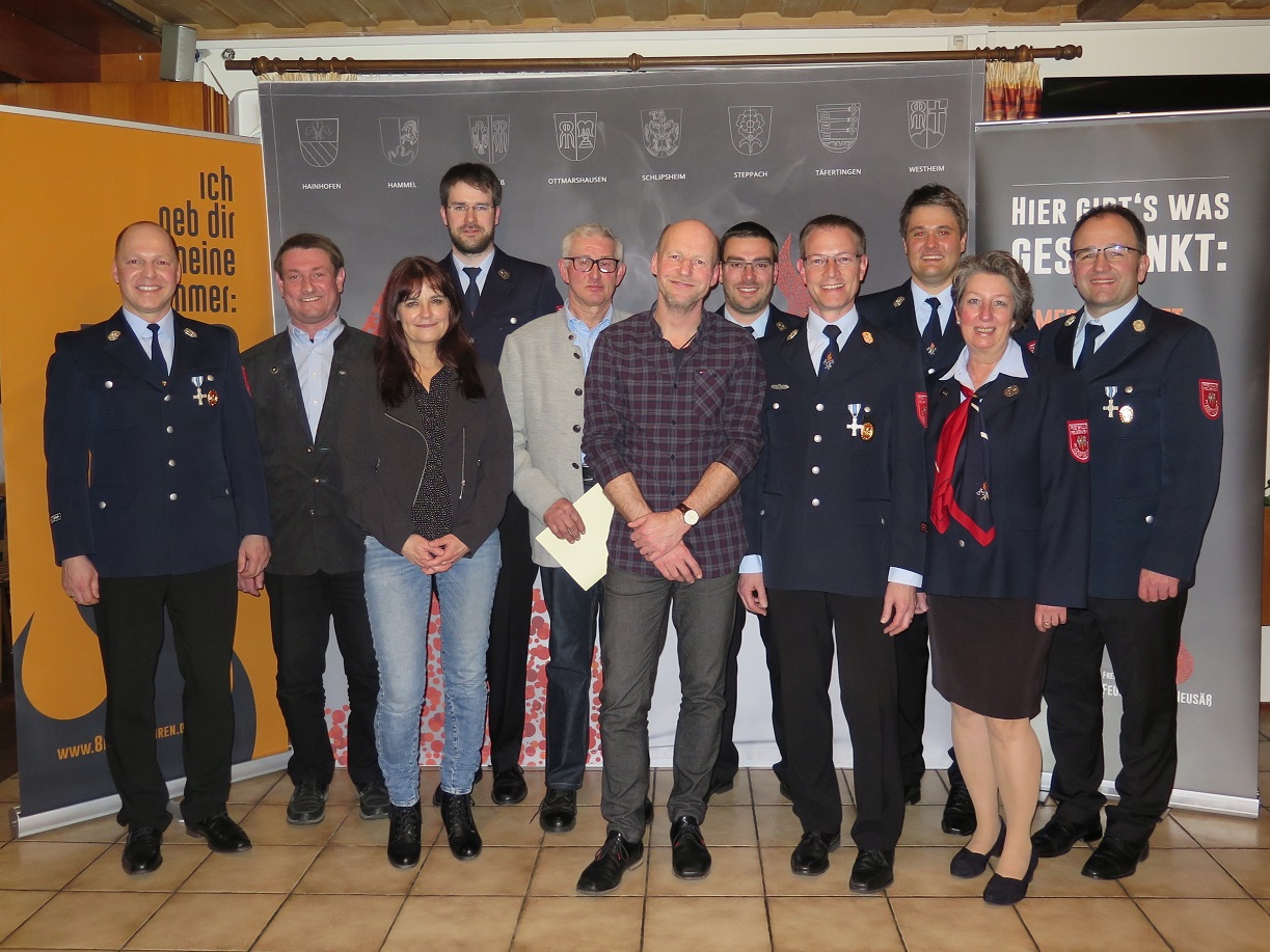 Benjamin Franz (2. Kommandant), Thomas Weißenbach, Tobias Lautenbacher (1. Kommandant), Christine Breither (Kassiererin) und Jürgen Klauser (1. Vorstand)